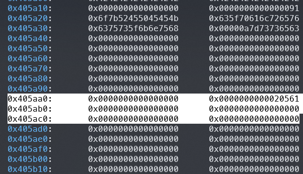- (prev_size, FD,BK에 대한 정보가 저장되지않음을 확인할 수 있다.)